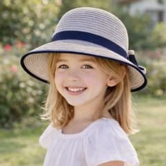 キッズ 麦わら帽子 リボン 女の子 帽子 あご紐付き 日よけ UV対策