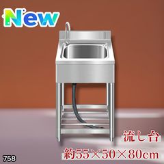 #758 ステンレス製 流し台 約幅55×奥行き50×高さ80cm 蛇口付き 必要な付属品が全てセット B55 ※北海道、沖縄本島、沖縄の離島、その他離島へは別途配送料有り