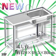 #1417 ステンレス製 厚みプラス 流し台 サイズ幅120×奥行き49.5×高さ80cm 深型シンク 蛇口付き 丈夫で長持ち 豊富な付属品 便利なタオル掛け S120 ※一部地域離島別途配送料有