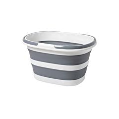 伊勢藤(ISETO) 折りたたみバスケット ソフトバスケット 【限定色】グレー 15L 幅46.3×奥行29.0×高さ6.8~19.6cm 日本製 水抜き栓付き 折りたたみ 防災 ランドリー ペットバス 清掃 カー用品 マルチ I-581 1