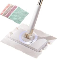 【乾湿両用モップ】自動で雑巾を挟むモップ、ペーパータオル掛けフローリングモップ