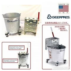 ◎ #【アメリカ製】未使用品 GEERPRES モップ絞り器 ドーリー付モップバケツ オーバルブリキバケツ 掃除用具 米軍放出 (140) HI29CK#25