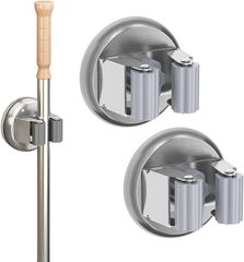 East Leaf モップホルダー 吸盤式 強力固定 壁掛け 掃除道具収納 滑り止め ステンレス製 (シルバー, 2個セット)