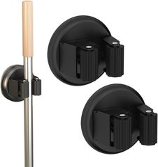 East Leaf モップホルダー 吸盤式 強力固定 壁掛け 掃除道具収納 滑り止め ステンレス製 (ブラック, 2個セット)