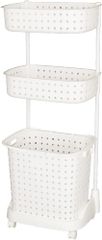 【RAKU】ランドリーバスケット スクエア 洗濯かご 脱衣所 洗濯物 収納 キャスター付き おしゃれ シンプル スリム 北欧 大容量 インテリア雑貨 洗える ホワイト (4段)/
