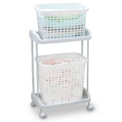 アスベル 脱衣籠 キャスター付 ランドリーW 簡単移動 2段 白 仕分可能 A7401/