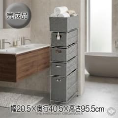 通気性抜群 ランドリーチェスト スリム 4段+カゴ 洗面所 収納【完成品】グレー