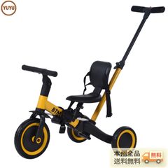 新入荷|三輪車 足けりバイク 一台4役 ベビーカー かじとり 手押し棒付 子供用三輪車 子供自転車 3輪 キッズ 幼児 自転車 バイク ペダル付き コントロールバー付き 乗用玩具 軽量 誕生日 1-5歳 組み立て簡単 プレゼント イエロー