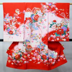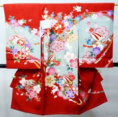 M17-3 未使用 正絹 女児 初着 祝着 長襦袢付き 赤系 鞠