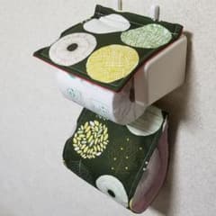 ★ハンドメイド★トイレットペーパーホルダーカバー★北欧風 サークル柄 カーキ