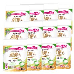 新品 エリエール トイレットペーパー 消臭プラス(+) 1.5倍巻き 37.5m×96ロール(8ロール×12パック) ダブル パルプ100% ほのかに香るナチュラルクリアの香り 【ケース販売】
