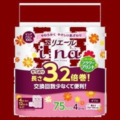 新品 エリエール トイレットペーパー i:na(イーナ) 2倍巻き 100m×72ロール (18ロール×4パック) シングル パルプ100% 華やぐフローラルの香り【ケース販売】