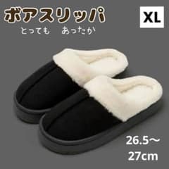 大きめ 厚底 ルームシューズ スリッパ ボア 26.5〜27.0cm ブラック