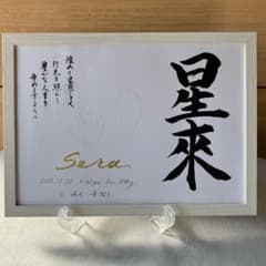 木目調フレーム手形足形命名書(由来付き)A 4サイズ 手書きオーダー100日祝い