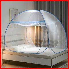 DEWEL 蚊帳 ワンタッチ テント式 幅200cm 底付き 防虫 シングル 折りたたみ可能 収納便利 キャンプ アウトドア ベッド用 ムカデ対策 高密度メッシュ 洗濯可能 ブルー 200x200x130cm