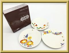 【未使用】保管品 BELLE MAISON ベルメゾン ツキイチ ざんまい プレートセット かわいい 食器 絵変わり プレート 皿 お皿 小皿 丸皿 取り皿 3枚セット 直径12㎝ 陶器製 箱付