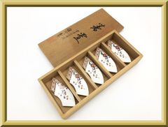 【未使用】保管品 有田焼 深川製磁 深川製 宮内庁御用達 箸置 5点セット 陶器製 扇型 金彩花文 共箱付