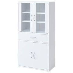 白井産業 食器棚 カップボード キッチン収納 ガラスキャビネット 一人暮らしの部屋や狭いスペースにぴったりサイズ ホワイト 白木目 ベーシックデザイン 幅56.6×奥行29.5×高さ119cm FUL-1255DGHWH フルニコ