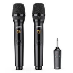 【新品】LEKATO K380Sワイヤレスマイク 充電式ダイナミックマイク UHF マイクロフォン 6.35mmレシーバ付き 技適認証済 会議/カラオケマイク/ホームパーティー に大活躍【2本セット】(ブラック) c1e03465