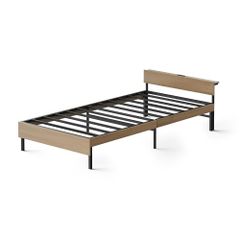 アイリスオーヤマ ウッドスチールベッド シングル ベッドフレーム 2口コンセント スチール×木製の異素材ベッド 宮付き SBW02-S ブラック/ナチュラル