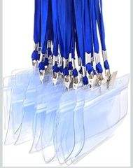 ★fiveAstar ID カード ホルダー ネックストラップ 名札 吊り下げ イベント スタッフ パス 名刺 社員証 ケース 入れ 首かけ 展示会 防水 セット 横型 タイプ A008 (5, 青色)