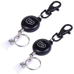 【人気商品】リールキーホルダー 吊り下げ名札用リール 強力 金属ワイヤー 伸びるリールストラップ リールクリップ Wisdompro 社員証/定期入れ/パスケース用 最長58cm 黒 2個入り