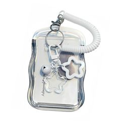 学生 高校生 女の子 透明 ICカード 通勤 通勤 ID 定期入れ 定期入れ 収納 カード ローダー 通学 通学 社員証 トレカホルダー トレカケース シリコーン ペンダント付き キーホルダ付き (白い星) かわいい クリア窓 カードケース カードケース ネー