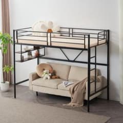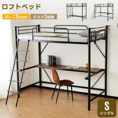 タイムセール!ロフトベッド サイド棚付き シングルサイズ 北欧風 スチール製 省スペースで下収納に便利 BLACK✕WHITE