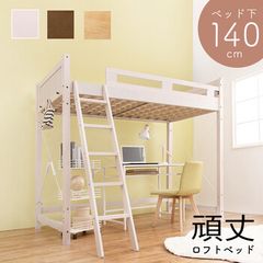 ロフトベッド シングルサイズ ロータイプ 北欧風 一人暮らしに最適 WHITE