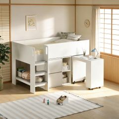 Chic ZONE システムベッド 収納付きベッド シングル 引き出し付き 子供部屋・大人用 天然パイン材 頑丈 一人暮らし 北欧風 (Aタイプ)☆彡