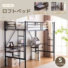 システムベッド ロフトベッド パイプベッド シングル コンセント付き デスク付き デスク移動可能 2タイプ はしご 子供ベッド 大人ベッド 一人暮らし 子供部屋 スチール 耐震 ベッド