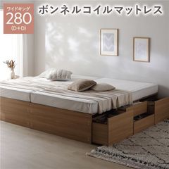 ヘッドレス チェスト ベッド 通常丈ワイドキング 280 D+D ナチュラル ボンネルコイルマットレス付 連結 大容量 引き出し キャスター コンセント すのこベッド 収納ベッド チェストベッド ベッドフレーム 連結ベッド 寝具 インテリア家具