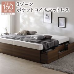 ヘッドレス チェスト ベッド ショート丈クイーン 160 SHSS+SHSS ブラウン 3ゾーンポケットコイルマットレス付 連結 大容量 引き出し キャスター コンセント すのこベッド 収納ベッド チェストベッド ベッドフレーム 連結ベッド 寝具 インテリア家