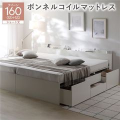 宮付き チェスト ベッド ショート丈クイーン 160 SHSS+SHSS ホワイト ボンネルコイルマットレス付 連結 大容量 引き出し キャスター コンセント 棚付き 宮棚付き すのこベッド 収納ベッド チェストベッド ベッドフレーム 連結ベッド 寝具 インテ