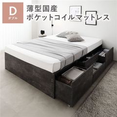 ヘッドレス チェスト ベッド 通常丈ダブル ストーングレー 薄型国産ポケットコイルマットレス付 大容量 引き出し 収納スペース 通気性 すのこ 収納ベッド 収納付きベッド チェストベッド ベッドフレーム ヘッドレスベッド 寝具 ベット 寝室家具 ベッドルーム