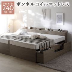 宮付き チェスト ベッド 通常丈ワイドキング 240 SD+SD グレージュ ボンネルコイルマットレス付 連結 大容量 引き出し キャスター コンセント 棚付き 宮棚付き すのこベッド 収納ベッド チェストベッド ベッドフレーム 連結ベッド 寝具 インテリア家