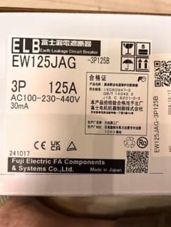 【未使用】EW125JAG-3P125 漏電遮断器 3P 125A (富士電機)