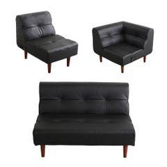 ソファ 3人掛け カウチソファ リビングソファ PUレザー 肘掛け付き 枕付き 高耐久 構造 二層クッション 収納 省スペース 北欧風デザイン お手入れ簡単 組立簡単 ローソファ仕様 木脚付き 洗練された 高級感 クッション付き 多用途
