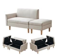 多機能 ソファベッド 組立て不要 5人掛け スツール付き 圧縮梱包 高反発ウレタンフォーム コーデュロイ素材 コンパクト設計 シンプルデザイン リビング用 家庭用 インテリア 省スペース おしゃれ