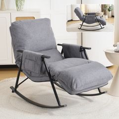 ロッキングチェア リラックスチェア 背もたれ多段階調節可能 足部分多段階調節可能 頑丈 耐久 座り心地よい 揺れる椅子 読書椅子 床を傷つけない 組み立て簡単 屋内用 リビングルーム用 ベランダ用 リラックス 一人暮らし ふわふわ 通気性 【DARK GRE