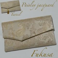 【再販】ペイズリー柄ジャガード織の袱紗(結婚式・和装) ベージュゴールド