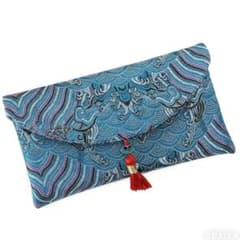 慶弔両用ふくさ 袱紗 マグネット留め 全面刺繍 祥雲モチーフ ブルー