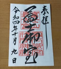 ◆冨士御室浅間神社(山梨・河口湖)◆御朱印「本宮」 令和4年(2022年)10月