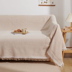 【数量限定】Atokazo ソファーカバー 北欧風 マルチカバー ソファカバー 肘付き 肘なし 多機能 ブランケット 綿 リバーシブル フリンジ付き おしゃれ 保護カバー 防塵 キズ防止 汚れ防止 洗える 四季通用 カーキ・ワッフル柄 130X180cm(1~
