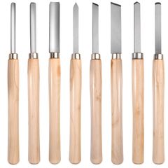 新品 LEONTOOL 旋盤用バイト木工 旋盤 加工用 彫刻刀セット 8本セット (平大 平小 斜め平大 半円 スクイ丸 両刃剣 斜め平小) 65マンガン鋼 耐摩耗 刃長12.5cm 握りやすい ウッドハンドル 木材の溝掘り 削る 面取り DIY 家具製作 荒