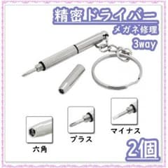 メガネ用 精密ドライバー 2個セット キーホルダー 3WAY ドライバー