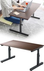 イーサプライ ローデスク 高さ調整 4段階 38?50cm 幅90cm 奥行50cm 木製 テレワーク 昇降式 ゲーミング パソコン 組立簡単 ダークブラウン EEX-DKL02DBR/