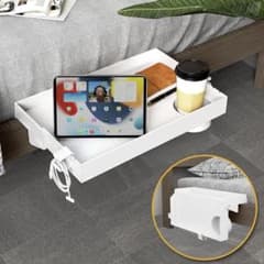 YMYNY サイドテーブル ナイトテーブル ファブリック引き出し付き 木目 アイアン&木製 組み立て簡単 コンパクト ナイトスタンド ベッドサイドテーブル ベッド横 ソファー横 ホワイト HST011W/