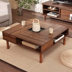 WAMPATローテーブル センターテーブル 正方形 木制 コーヒーテーブル ちゃぶ台 座卓 コンパクト収納 隠し収納スペース付き リビング用テーブル 幅80×奥行80cm×高さ33cm ウォールナット W02K2081A/