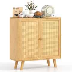 特価 収納家具 収納棚 大容量 キッチンカウンター 34.5×高さ85cm レンジ台 幅80×奥行 食器収納 小物入れ ラタン調 リビングチェスト マグネット式ドアキャッチ リビングボード サイドボード おしゃれ 防塵 竹製 安定 キャビネット 寝室 Gian